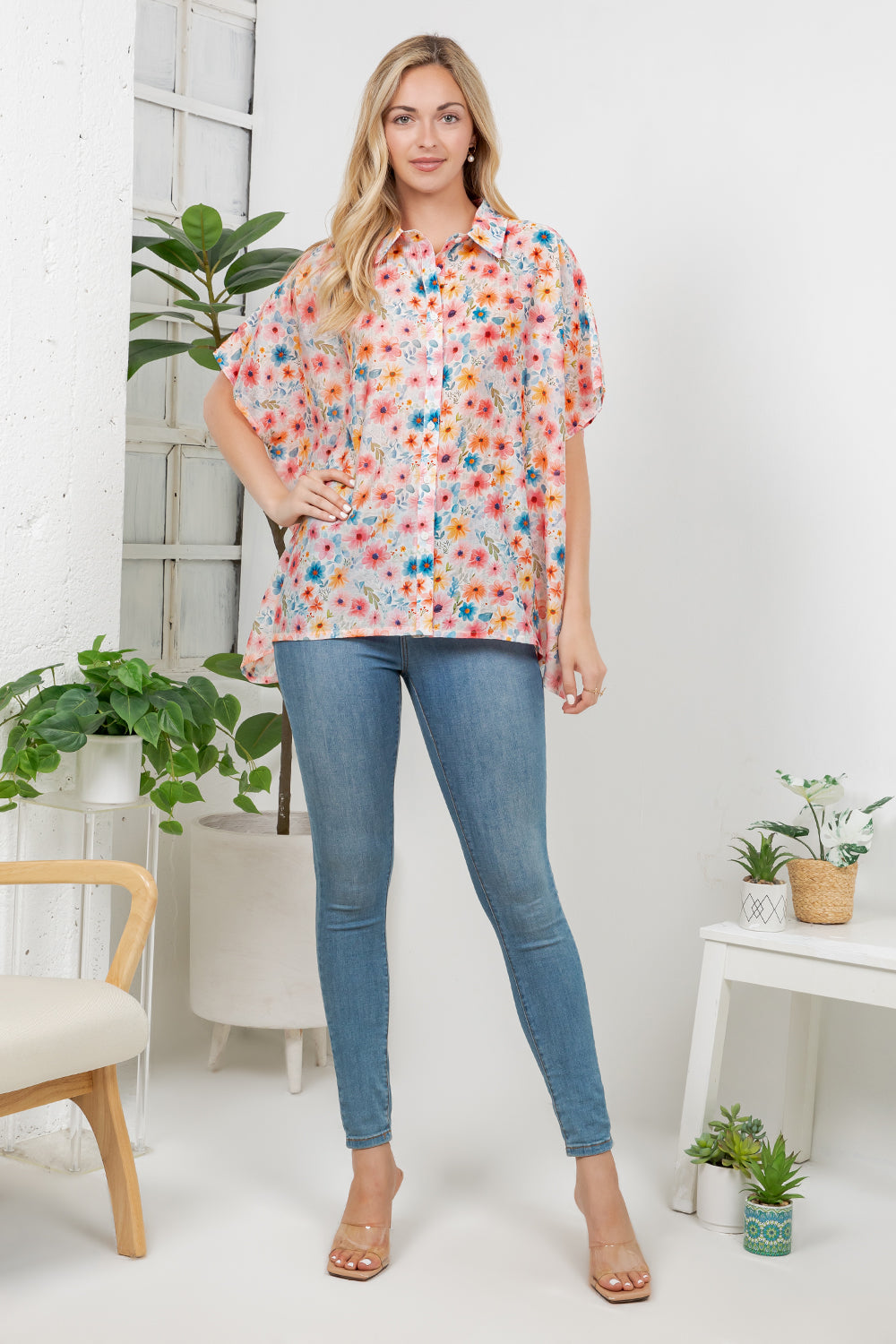 Embrace effortless style with this vibrant floral print loose shirt. Featuring a relaxed fit that moves with you, it's perfect for layering or wearing solo. The colorful botanical design brings instant personality to any outfit, while the breathable fabric keeps you comfortable all day long. A versatile wardrobe essential that transitions seamlessly from casual to dressed-up occasions.