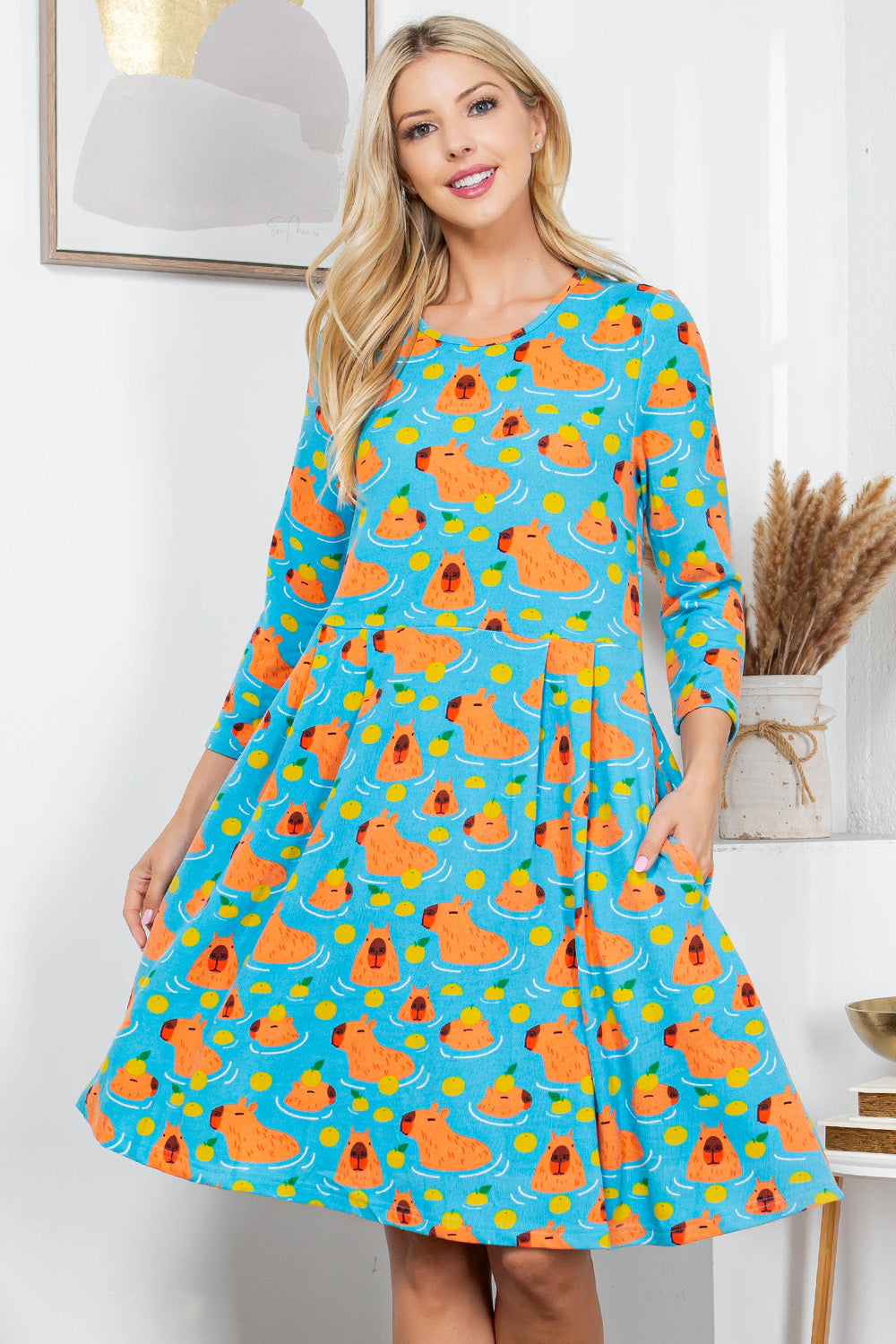 CAPYBARA PRINT WINTER TUNIC DRESS