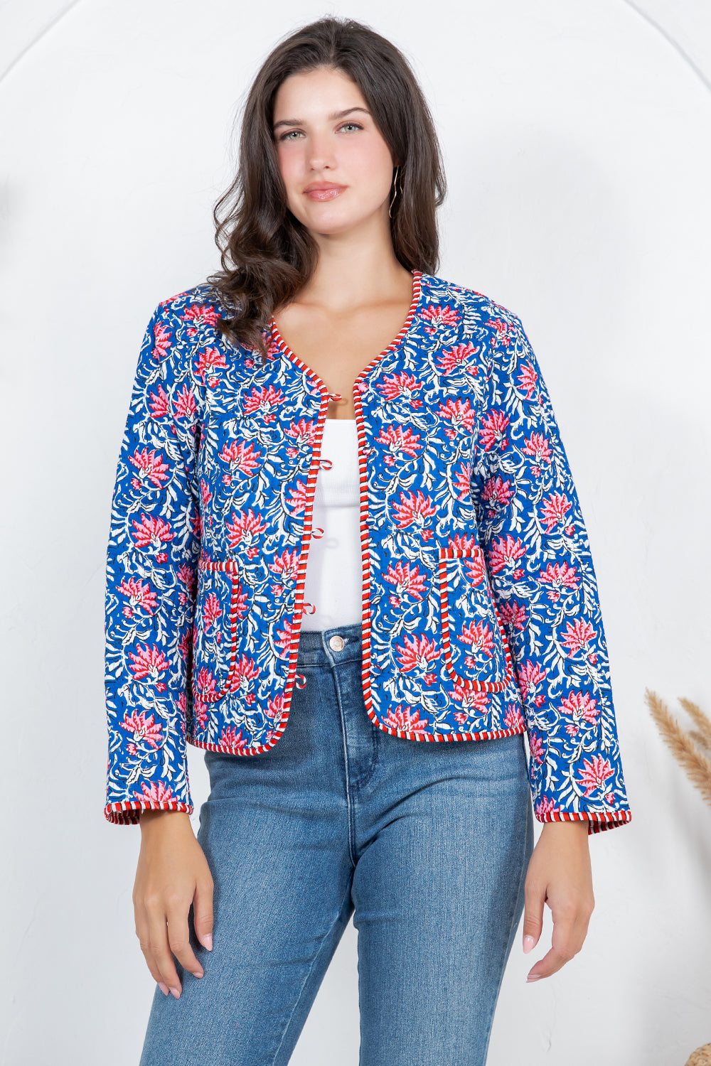 Take your style to the next level with our Quilted Floral Cotton Jacket! The reversible design offers versatility while the pockets add convenience. This trendy piece is a must-have in any wardrobe. Elevate your look and stay practical with our stylish jacket.