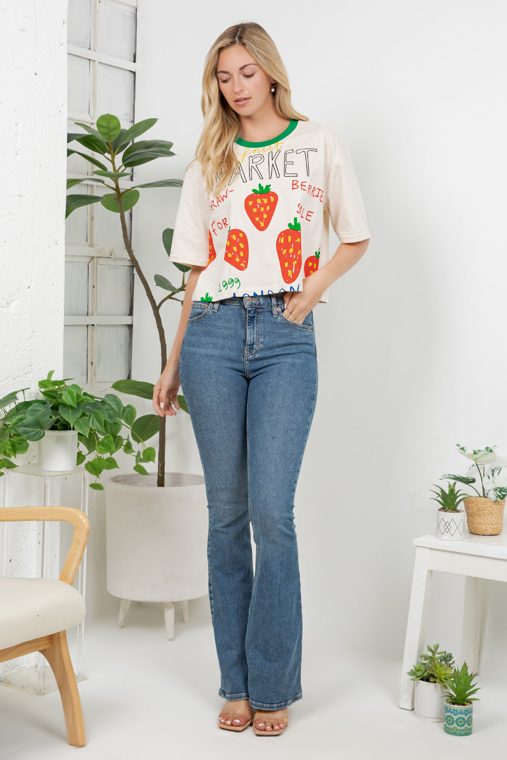 Sweet and stylish, this strawberry print cotton crop top brings fruity charm to your wardrobe. The cheerful design captures the essence of summer in a wearable way. Crafted from soft, breathable cotton, it's comfortable enough for all-day wear. Perfect for creating casual, playful looks that showcase your fun side and love of fresh, vibrant aesthetics.