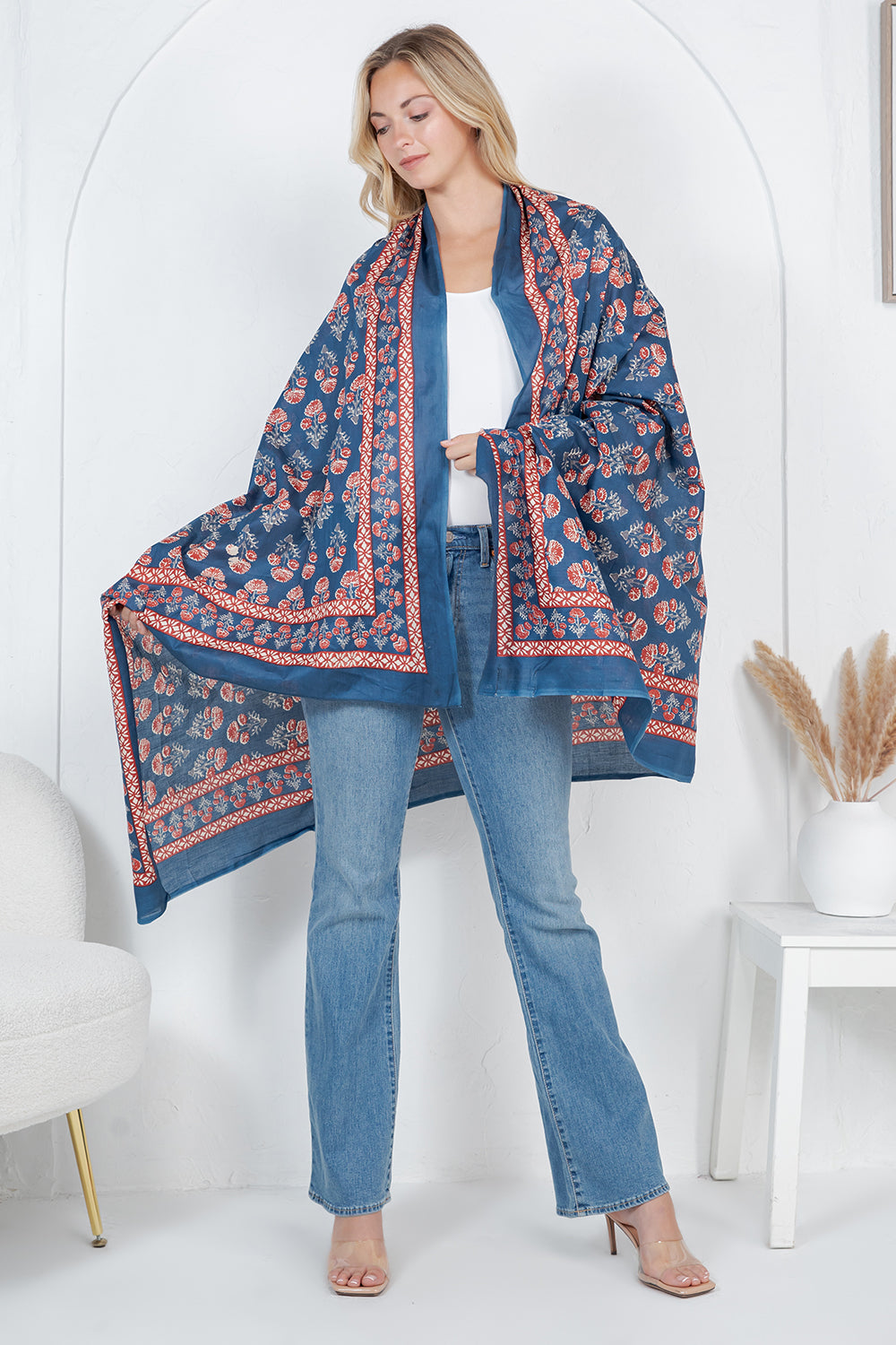 This handmade cotton scarf, measuring 42 by 70 inches, combines softness and comfort with artisanal quality. Made from 100% cotton, it offers a breathable, gentle touch perfect for everyday wear. Its generous size allows versatile styling options, making it an essential accessory to enhance your wardrobe with both warmth and elegance.