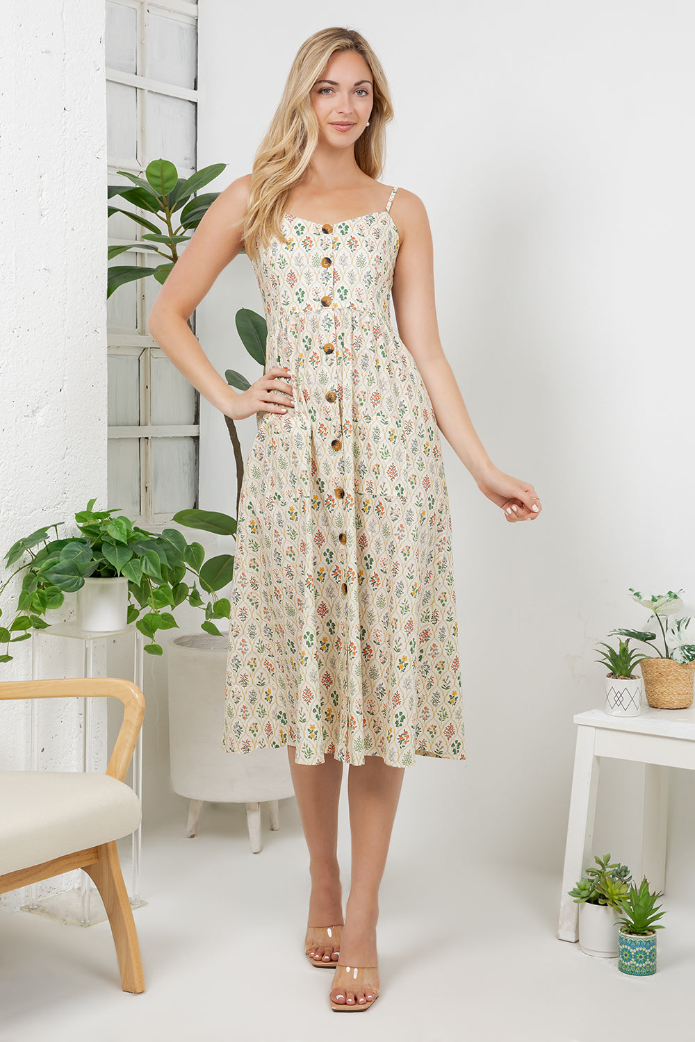 Timeless and feminine, this floral print cami dress brings natural beauty to your wardrobe. The lightweight fabric drapes gracefully while the adjustable straps ensure a comfortable fit. Versatile enough for casual days or dressed up for evening outings, it's a go-to piece for effortless style.