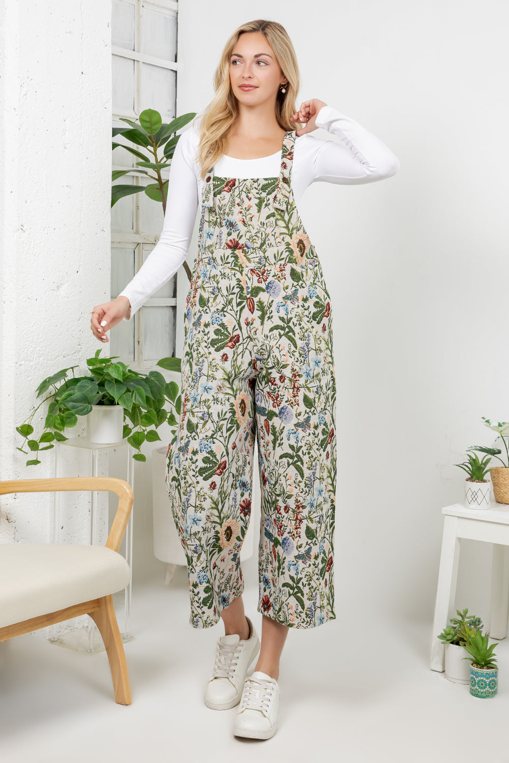 Indulge in the luxurious comfort of our Vintage Floral Overall. The adjustable straps ensure a perfect fit, while the convenient pocket adds functionality. Crafted with a soft, comfy fabric and adorned with a beautiful design, this overall exudes sophistication and exclusivity. Elevate your wardrobe with this stylish and practical piece.
